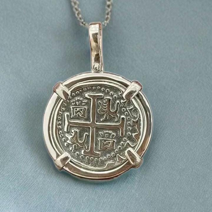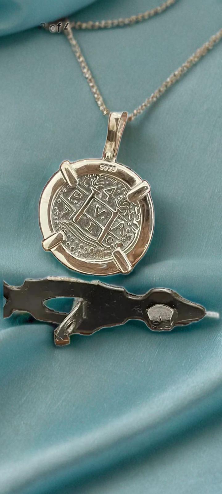 ATOCHA Solid Silver Coin Pendant | Authentic Treasure Jewelry | 952 Silver with Gold Plating | Historical Replica | Nautical | Pirate Coin