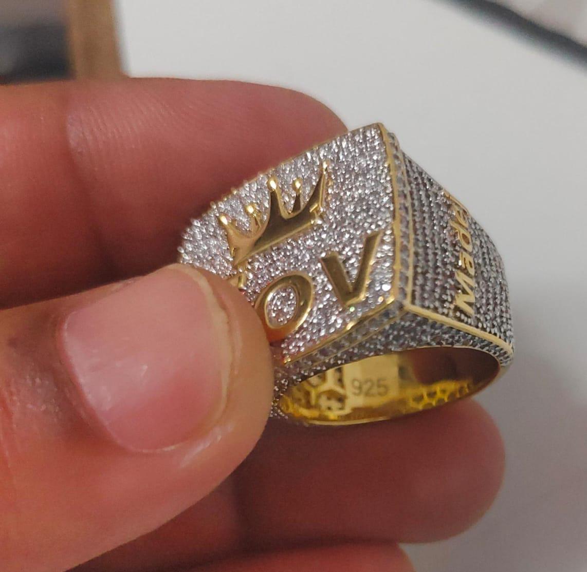 Customized 5.00CT Round Cut Moissanite Men's Ring | 14K Yellow Gold Plated | Sterling Silver | Handmade, Gift for Anniversary
