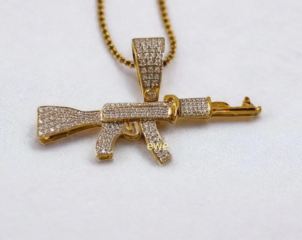 Sterling Silver 925 AK 47 Rifle Gun Pendant